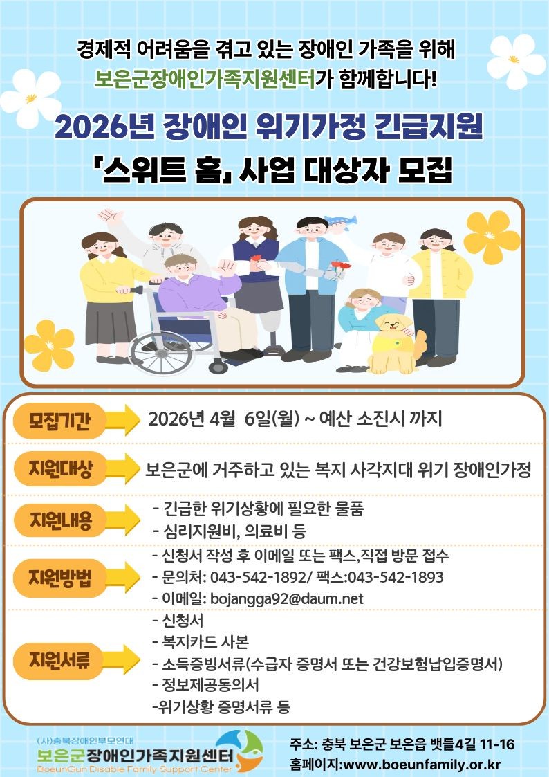 보은군장애인가족지원센터 2026년 1차 추가경정예산 공고 2026.3.9